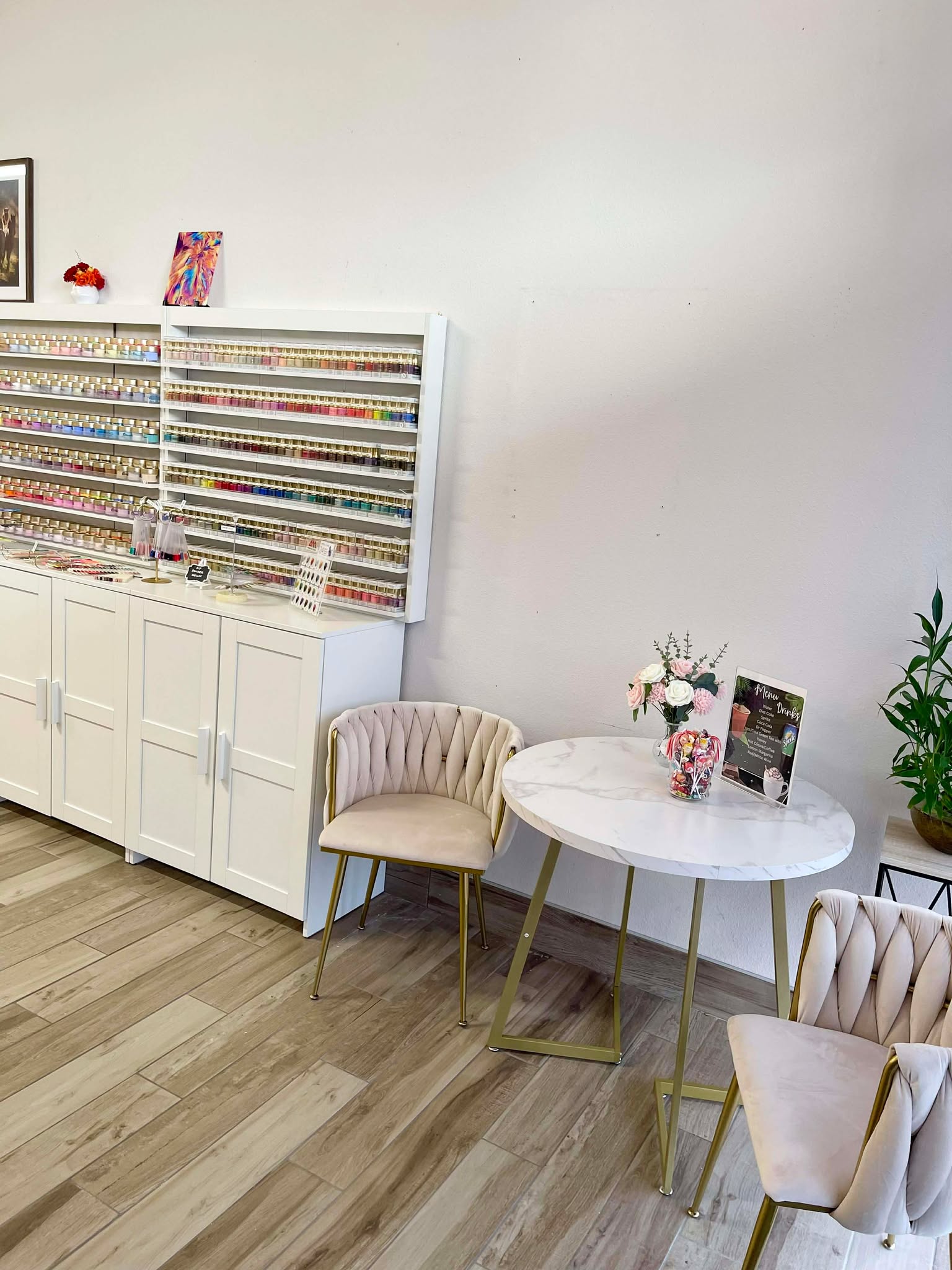 A modern, refined nail studio offering detailed manicures, luxurious pedicures, nail enhancements, lashes, and brow services in a clean and relaxing environment near Lake Conroe.